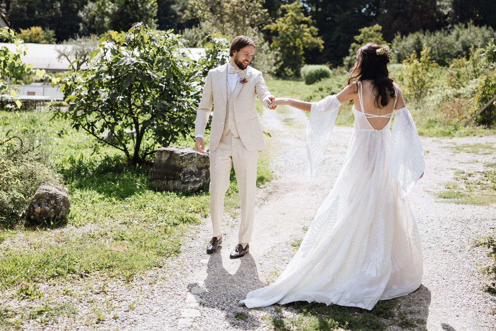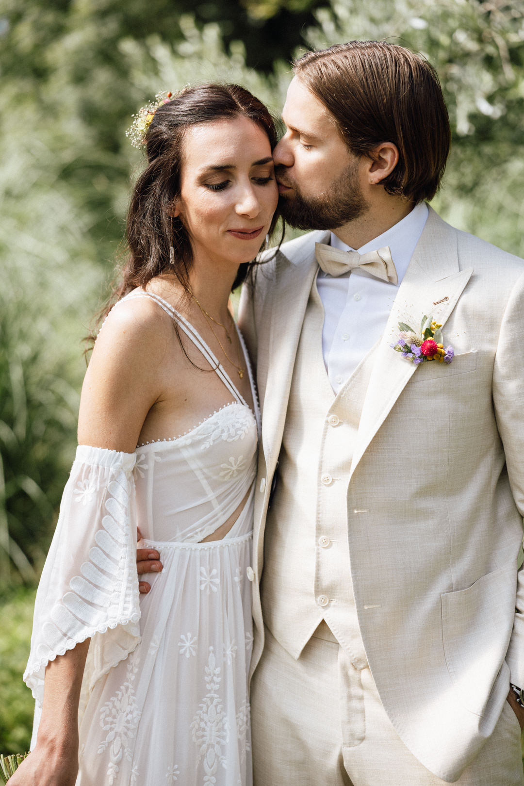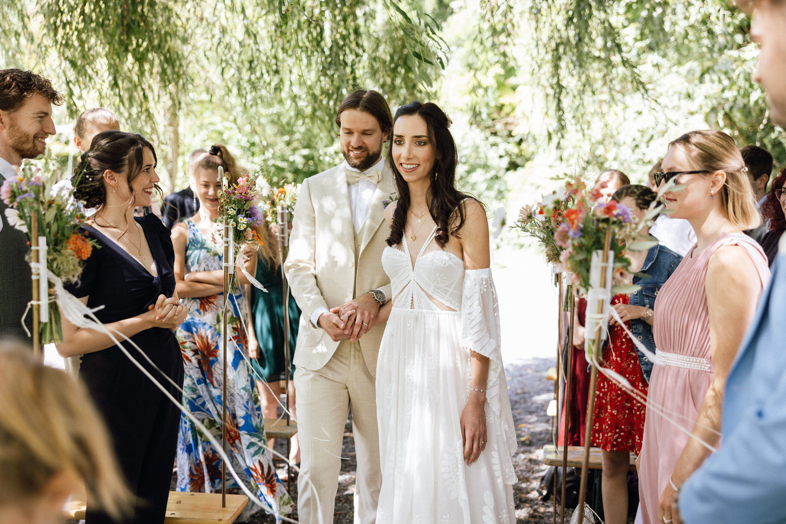 Vom ersten Lachen beim Getting Ready bis zur emotionalen, freien Trauung unter dem prachtvollen Baum: Der Tag war geprägt von entspannter Eleganz. Das Zusammenspiel von Brautkleid, Sommeranzug und farbenfrohen Wildblumen harmonierte perfekt mit der grünen Zehendermätteli-Kulisse.