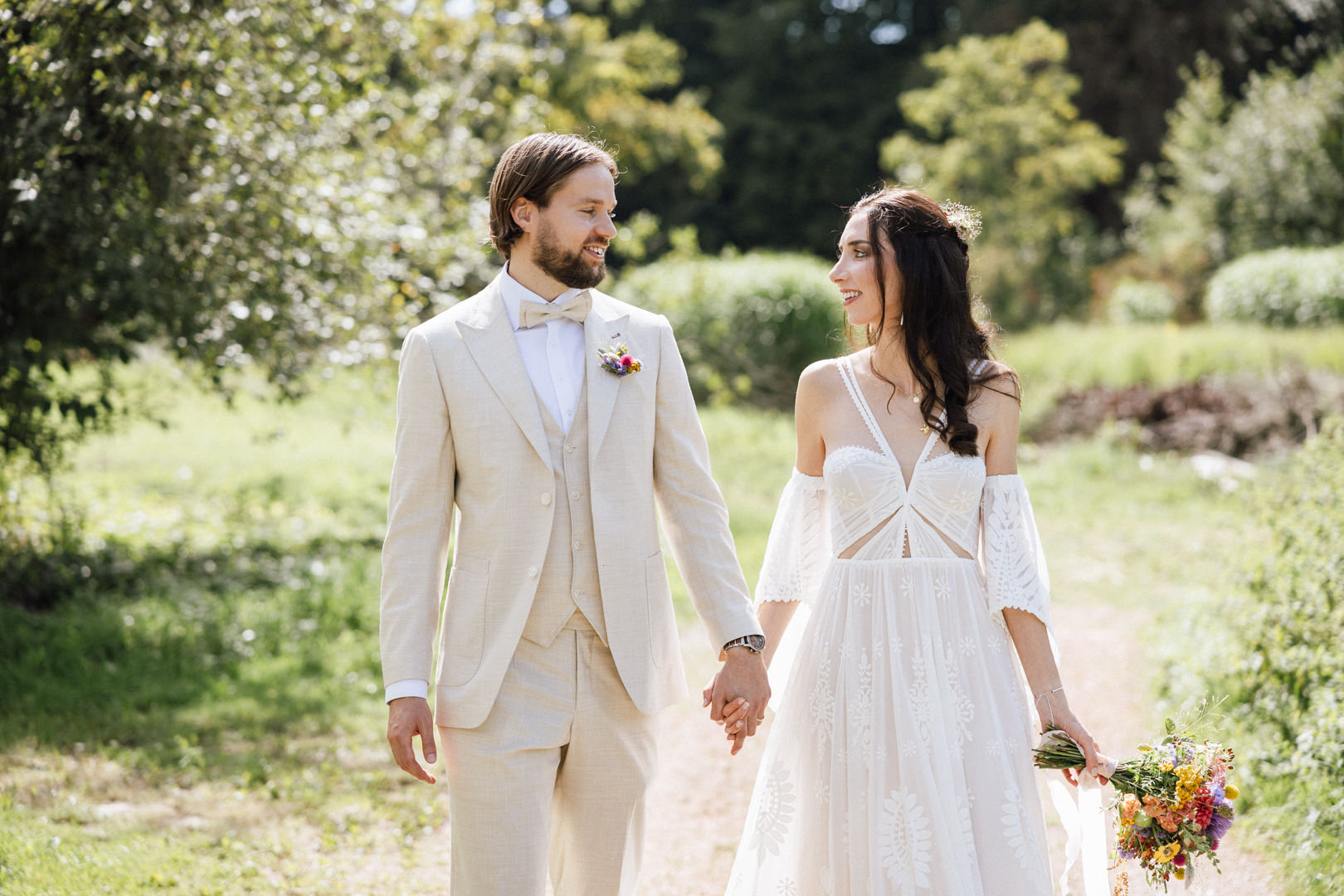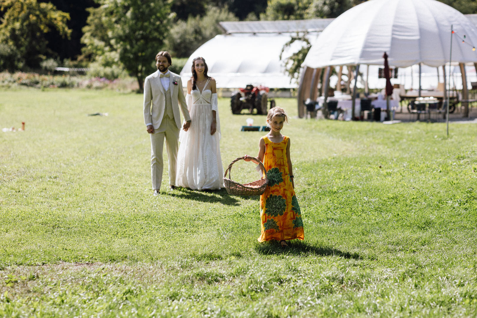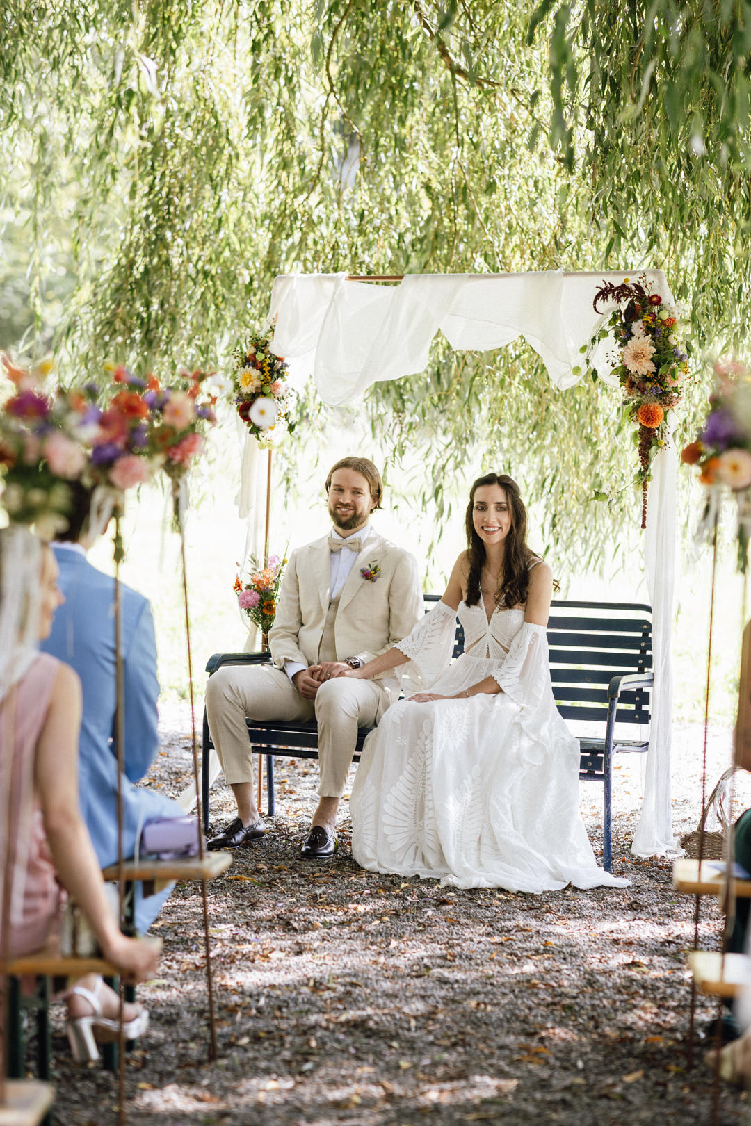 Vom ersten Lachen beim Getting Ready bis zur emotionalen, freien Trauung unter dem prachtvollen Baum: Der Tag war geprägt von entspannter Eleganz. Das Zusammenspiel von Brautkleid, Sommeranzug und farbenfrohen Wildblumen harmonierte perfekt mit der grünen Zehendermätteli-Kulisse.